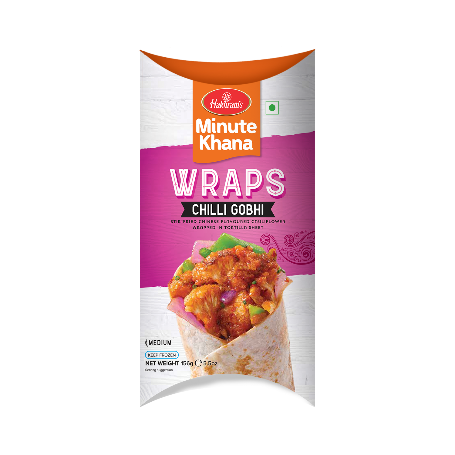 ● Ready-to-eat Delhi-style wrap filled with spicy chilli gobhi (cauliflower)